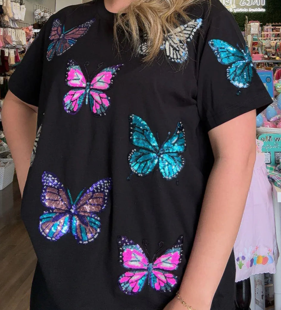 🦋 Sparkle and soar, baby! This black tee with sequin butterflies isn’t just a vibe—it’s a whole metamorphosis. Perfect for when your outfit needs a little ✨ flutter ✨ of fabulous.
