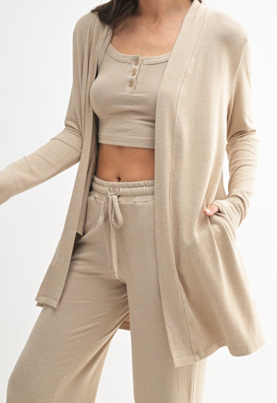 Experience ultimate comfort and style with our Hacci Open Cardigan. Made with the softest Hacci material, this cardigan is perfect for any occasion. Its open design allows for easy layering, and its cozy fabric makes it the perfect choice for cooler weather. Upgrade your wardrobe with the Hacci Open Cardigan today.