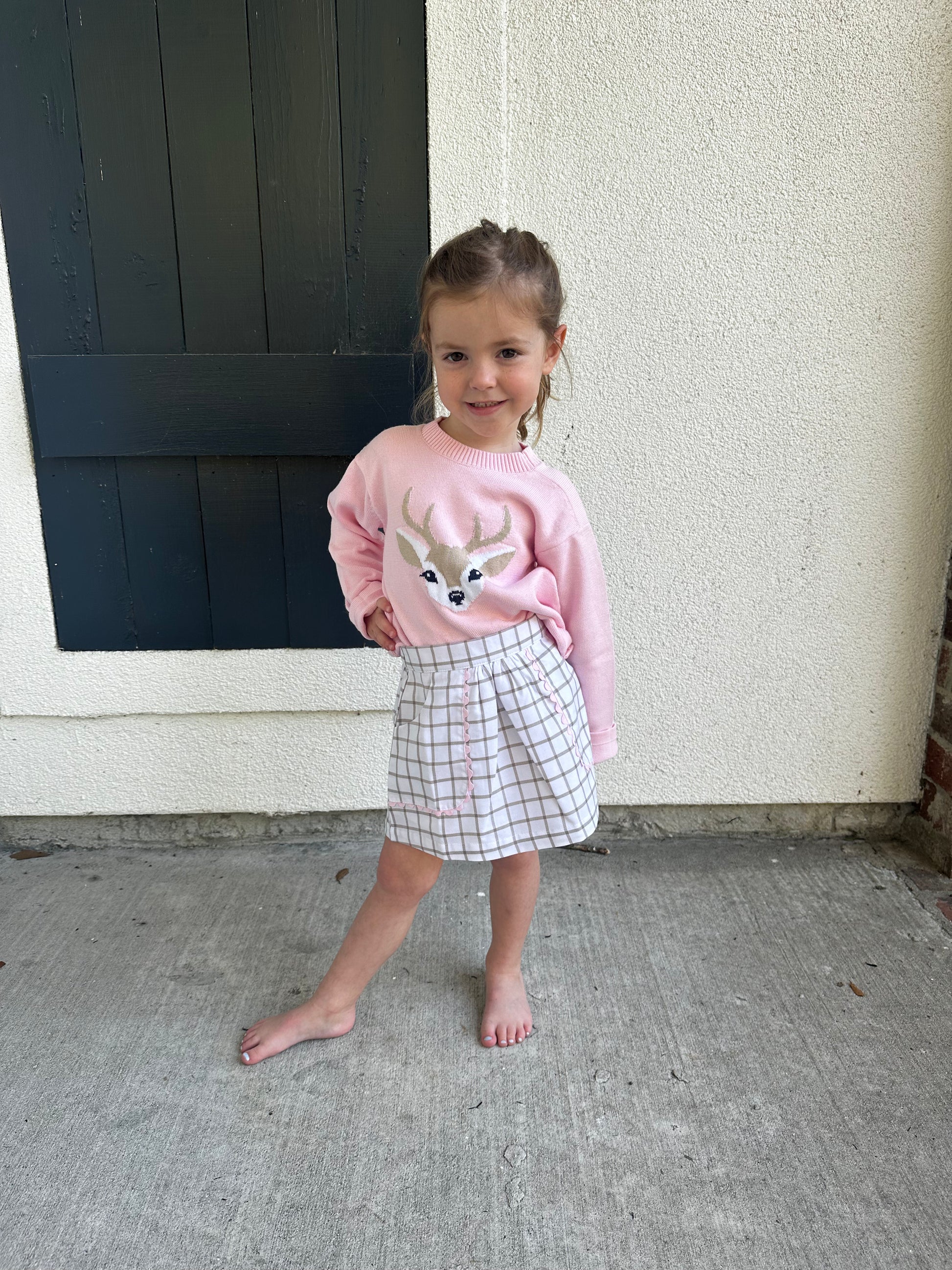 The Isabella Skirt features a classic khaki windowpane pattern with charming pink ric rac trim, making it the perfect choice for any girly little girl. Crafted with a high-quality woven fabric, this skirt offers both style and durability. Add a touch of sweetness to her wardrobe with the Isabella Skirt.