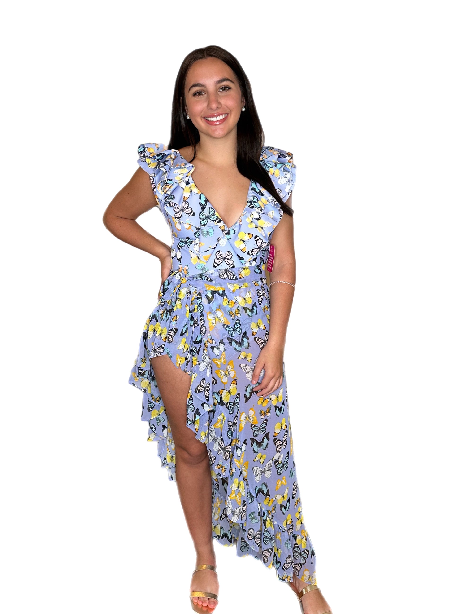 Fly away in style with the Kailani Painted Lady Wrap Cover-Up. Featuring a whimsical butterfly print and playful ruffle detailing, this cover-up will add a touch of fun to your beach look. Transform into a true beach beauty with this quirky and unique piece!
