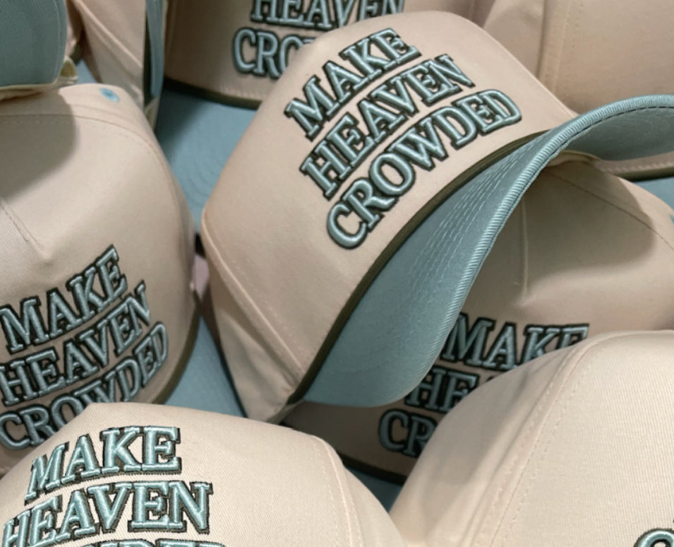 Spread love and light with our Make Heaven Crowded trucker hat! With a comfy, adjustable fit, this hat is perfect for shining your faith wherever you go. A sweet reminder to live with kindness, joy, and purpose!✝️