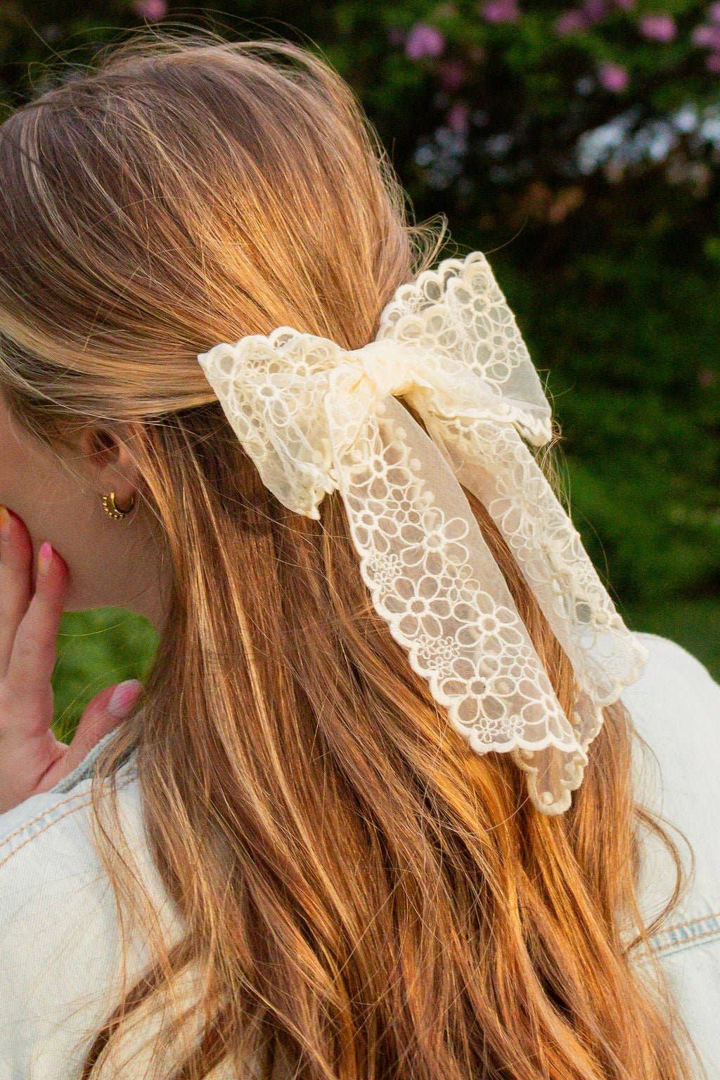 This bow is a perfect mix of feminine, sophistication, and whimsy! This cream bow is a must. Made with a beautiful cream lace that features a flower pattern, it is the perfect addition to any hairstyle and outfit. And with the attached French-style barrette, it's so easy to apply. Elevate any look instantly with this adorable Bow