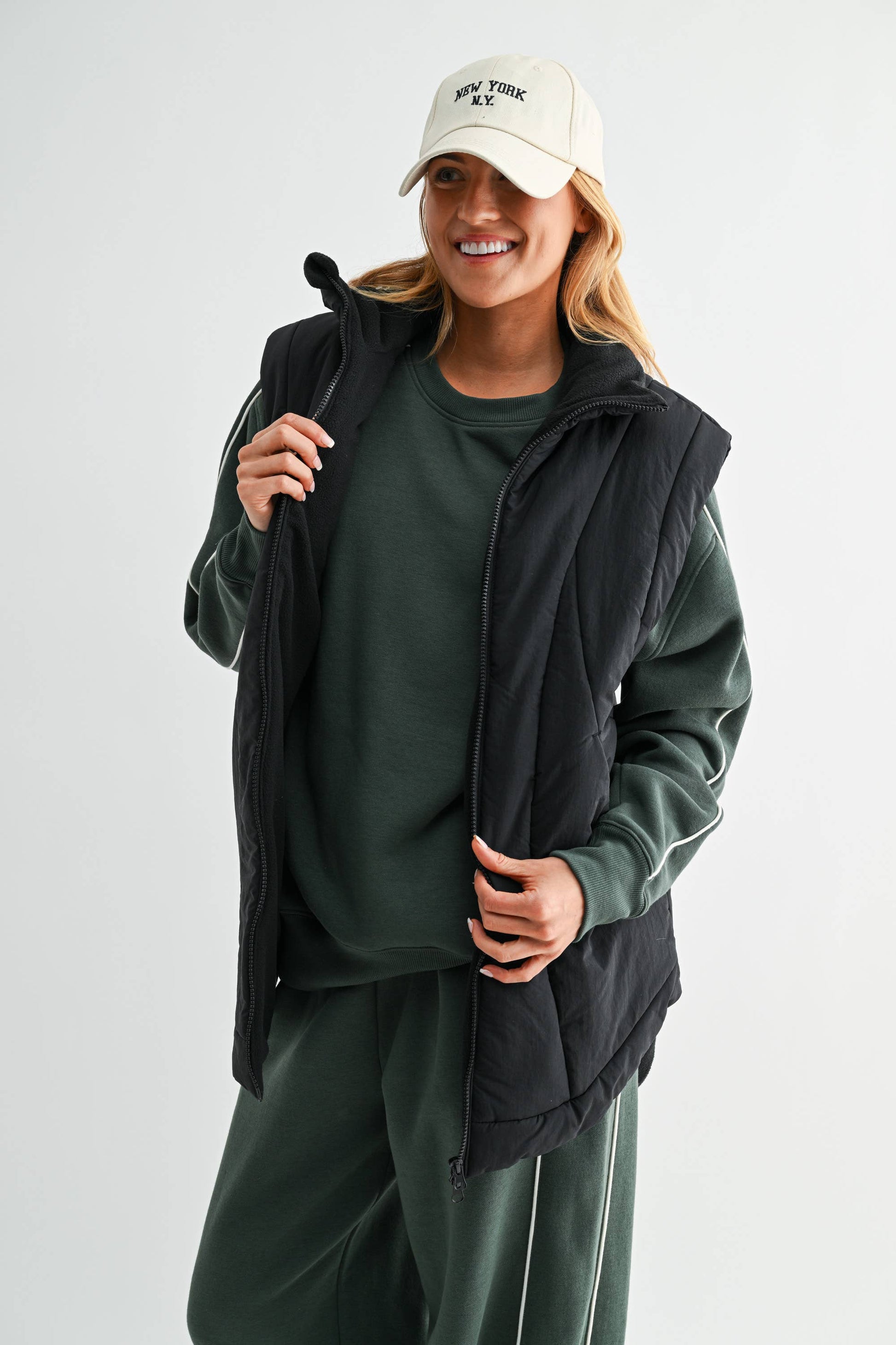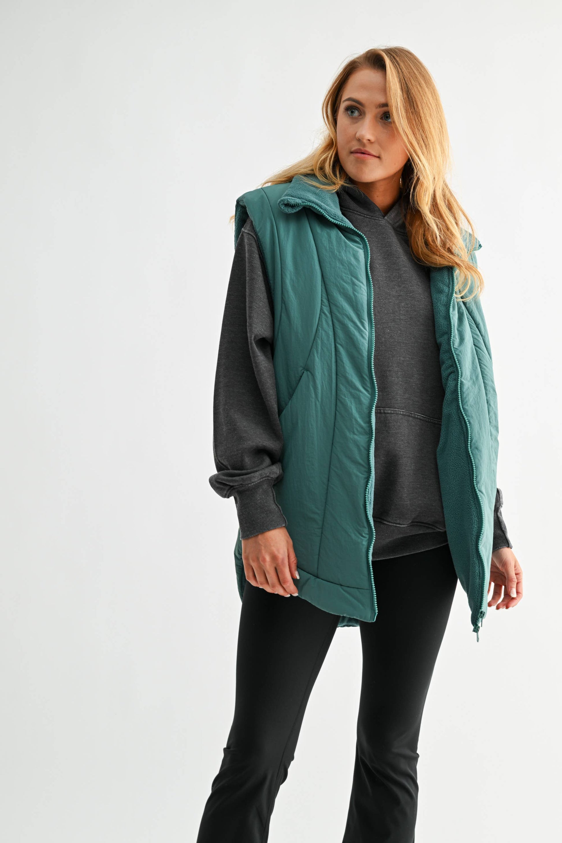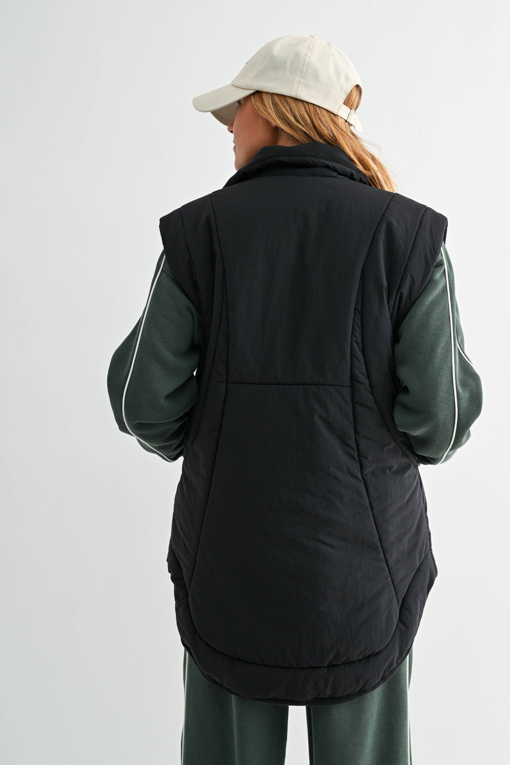 A sleek and cozy cold-weather layer, this longline puffer vest features a plush fleece interior for extra warmth, snap-closure pockets to secure your essentials, and a full-zip front that extends into a mock neck for wind protection. The curved hem and structured seaming details give it a flattering, elevated silhouette.