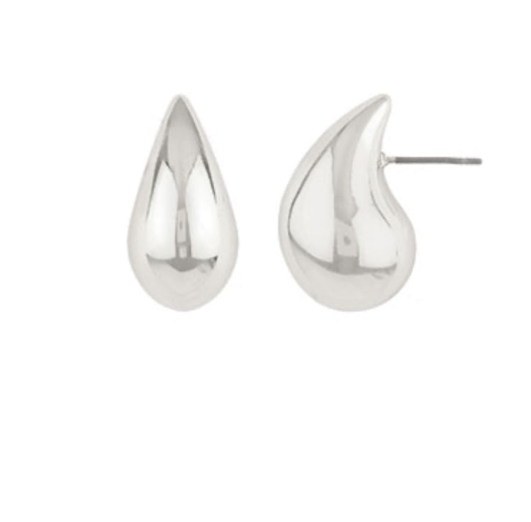 "These 25mm puffy teardrop earrings in silver and gold are lightweight and perfect for everyday wear. Enjoy the timeless elegance of their classic design and the comfort of their lightweight construction. An effortless accessory to elevate any outfit."