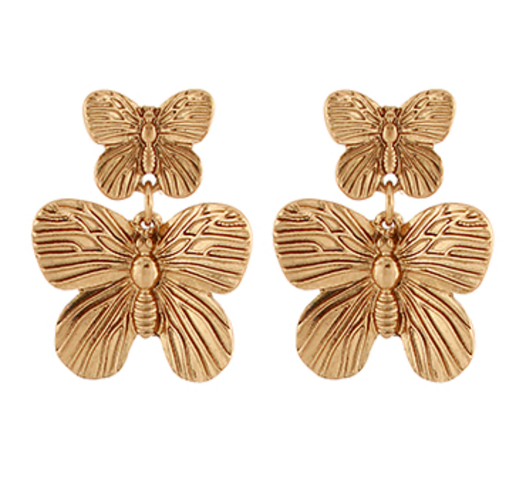 Expertly crafted with a textured design, these butterfly drop earrings add a touch of elegance to any ensemble. Made with high-quality gold, they offer a timeless and sophisticated look. A perfect addition to any jewelry collection.