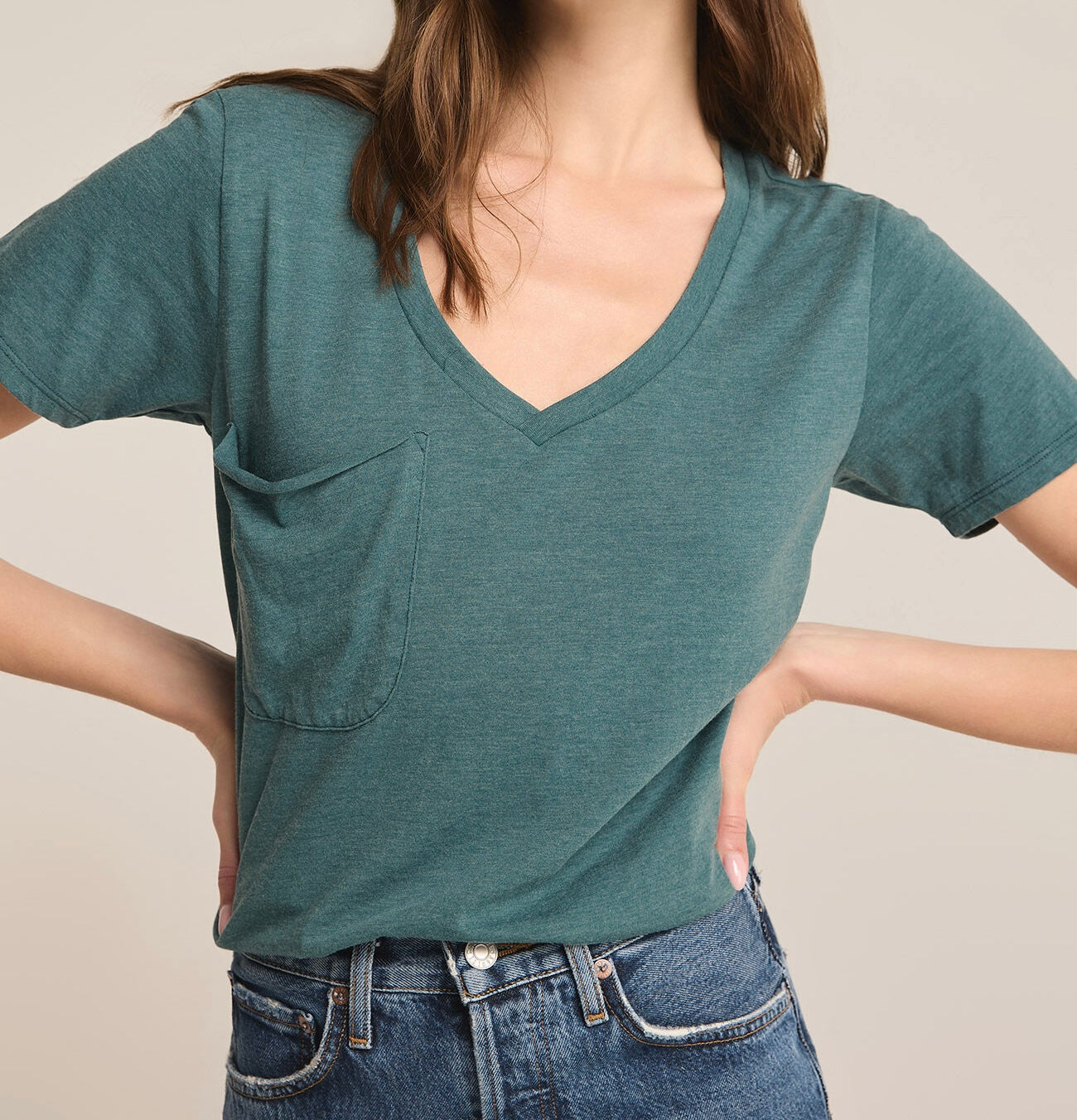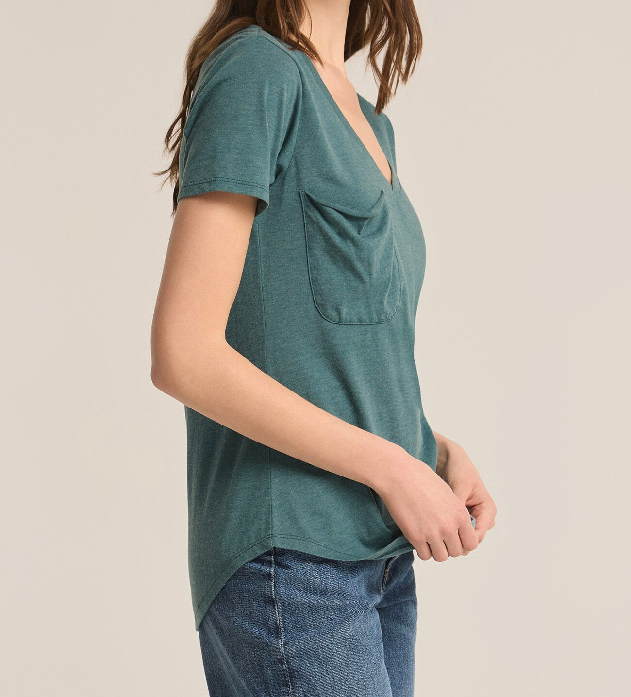 Introducing The Pocket Tee - a staple piece for every wardrobe. Made with a soft and lightweight fabric blend, this V-neck tee features a chest pocket for added style and convenience. Its signature burnout treatment adds texture and dimension, while the regular fit provides comfort and versatility. Don't miss out on this essential basic, made with 60% cotton and 40% polyester.