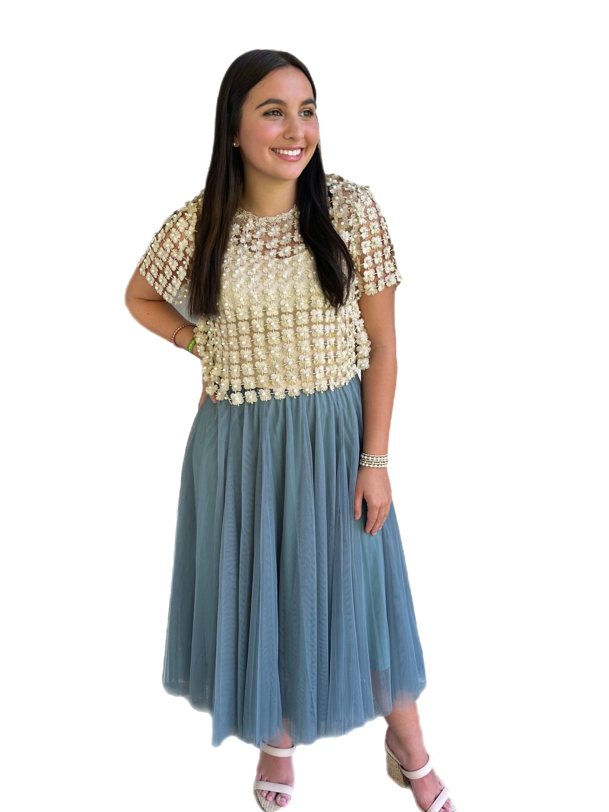 Experience elegance and comfort with our Tulle Midi Skirt. Made with an elastic waist for a perfect fit and fully lined for coverage. This versatile piece is perfect for any occasion, giving you the confidence to stand out and twirl the night away.