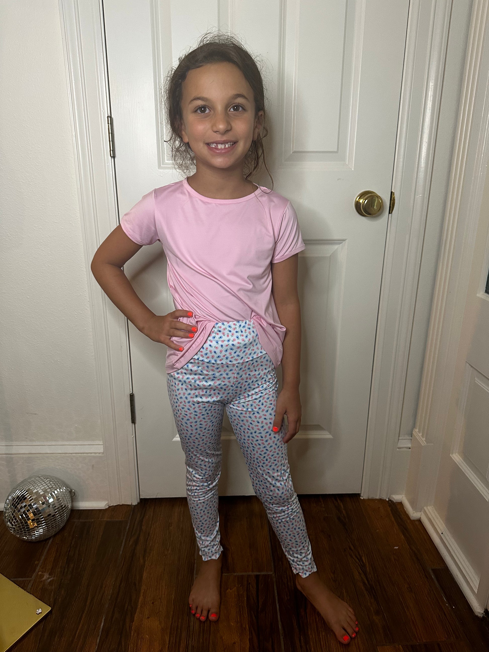 These Sadie Scallop Leggings in Kindness Blossom are the perfect addition to your active little girl's wardrobe. The scalloped design adds a touch of sweetness to these comfortable and durable leggings. Great for playtime or lounging, these leggings will keep your child moving with ease and style.